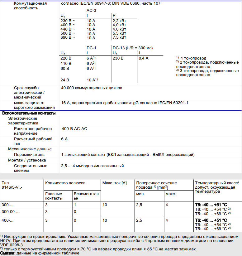 Силовой выключатель и выключатель электродвигателя 8146/5-V11 используются в качестве выключателя сети для распределительных устройств и электрических цепей электродвигателя. Стандартизованы выключатели с расчетным рабочим током до 80 А. Выключатели для рабочих токов, превышающих стандартизованные значения, проектируются и изготовляются по заказу.